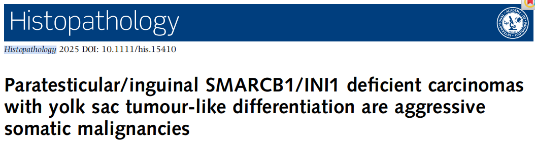 【文獻題目】Paratesticular/inguinal SMARCB1/INI1 deficient carcinomas with yolk sac tumour-like differentiation are aggressive somatic malignancies.
