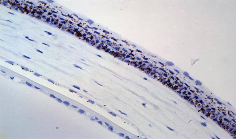 圖b. 小鼠眼中wnt4表達,使用RNAscope®2.5 HD棕色試劑盒
